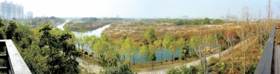 在新江灣城內(nèi),建德國際公寓、上海夢想、涵碧景苑等多個小區(qū)的對面,就是綿延數(shù)公里的“生態(tài)走廊”。昨天上午,記者在“生態(tài)走廊”里看到一派落繽紛的冬日景象。可是,正在這里鍛煉身體的一位四五十歲的居民介紹說,現(xiàn)在看到的風(fēng)景已大打折扣了。