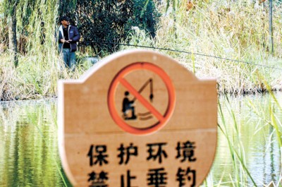 □禁止垂釣告示牌絲毫不起作用