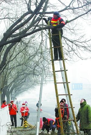 園林部門近期陸續對長安街沿線樹進行修剪,剪掉破損得病以及生長過低的樹枝,以避免遮擋公交車司機視線和雪后樹枝被壓落傷及行人,同時更好地美化城市