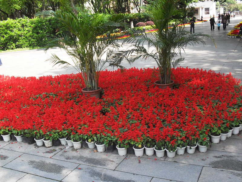 一串紅花序修長,色紅鮮艷,花期長,適應(yīng)性強(qiáng),為中國城市園林中最普遍栽培的草本花卉之一,廣泛分布我國各地。一串紅在秋天里把城市打扮成一個(gè)紅艷艷的喜慶的世界,一串紅既給人以色彩的喜悅,還給人以紅火的喜慶。近看,一串紅像小火苗,像小姑娘,又像一串小鞭炮。遠(yuǎn)看,一串紅像一片燃燒了的火焰,像一群穿著紅色演出服的姑娘,還像一片美麗的彩霞。