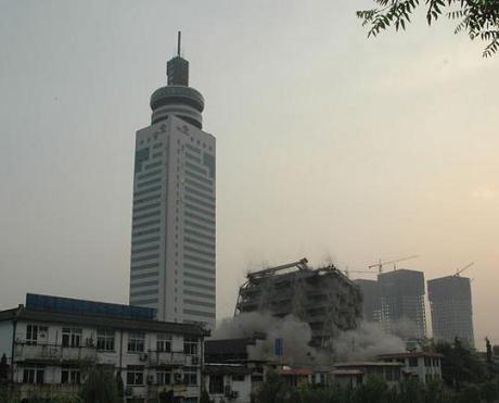 電子工貿大樓片區拆遷工程。該片區拆遷面積10187.64平方米,其中:電子工貿大樓5890.03平方米,裝飾材料商場3933.49平方米,私房戶4戶364.09平方米。在市信息產業局、市輕紡辦、市中區政府等責任部門單位的支持配合下,于5月13日成功實施了爆破拆除,5月25日前拆除現場全部清理完畢,共清理渣土8000多立方,工程全部完成。