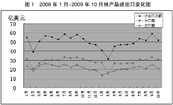 據海關統計,受國際金融危機影響,2009年前10個月主要林產品進出口同比仍然下降。從單月看,自2009年3月以來林產品進出口出現回暖跡象后,5月~10月呈現振蕩回升的態勢,其中,7月、9月兩月出口環比明顯增加,9月當月的出口額實現同比增加?傮w來看,我國林產品進出口整體形勢已顯示出總體向好的趨勢。