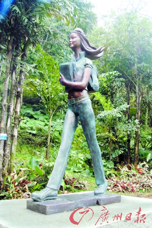 俞暢的雕塑《朝陽》則矗立在平衡小廣場四周的兒童題材區,該作品表現的是一個朝氣蓬勃的,迎著朝陽,懷抱著書本走在上學路上的年輕女學生形象。