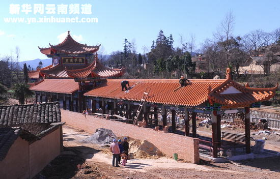 這是1月27日拍攝的正在建設中的云南省師宗縣基鄉農家文化活動長廊。