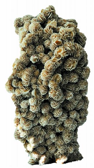 “沙漠玫瑰”的主要成分是石膏,玫瑰的花瓣就是多片石膏的板狀結晶體。這種“玫瑰”主要出產于美國、墨西哥、摩洛哥等國的沙漠地帶,在我國境內的內蒙古也有,這位藏友帶來的“沙漠玫瑰”應當是產自美國。