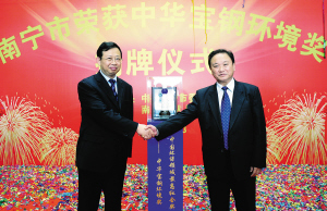 2010年2月3日,自治區黨委常委、南寧市委書記車榮福和自治區政協副主席李彬共同為南寧市榮獲中華寶鋼環境獎揭牌。