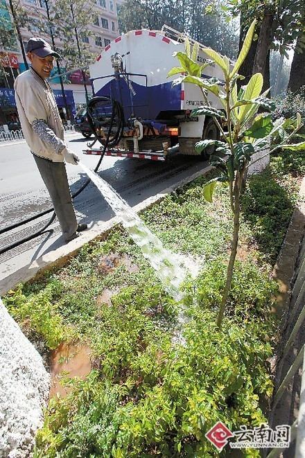 昆明市園林綠化局綠化處還介紹:自去年10月中旬昆明進入持續干旱天氣以來,昆明市園林綠化局就啟動了旱情長效機制,所有機關、處室,以及昆明所有的縣、市區綠化部門都投入到抗旱工作中,對城市行道樹、新栽苗木、公園綠地進行澆水抗旱,137輛澆水車全部啟動,每輛澆水車至少配2名司機,全天進行16至24小時澆水作業,確保全城綠化樹木成活。此外,還有抽水澆灌、管灌等多種澆灌方式配合,加之植樹公司的護樹護苗工作,使得昆明的綠化樹木并沒有因干旱而出現死亡。