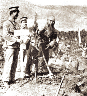 一九二八年三月十二日,民國元老于右任在中山陵植樹。