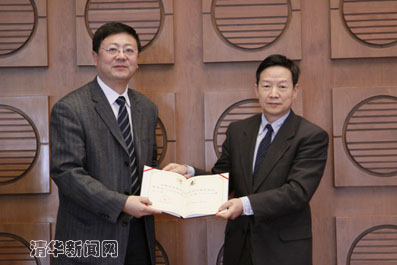 清華大學常務副校長陳吉寧為仇保興頒發聘書