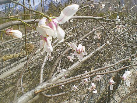 右圖為盛開的白玉蘭花。 記者 師艷妮 攝