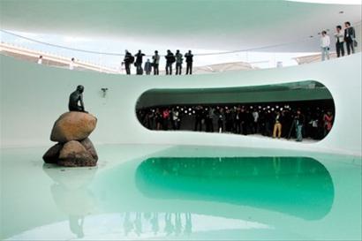 記者在現場看到,隨著嘉賓和參觀者一起倒計時,覆蓋在銅像上的紅布緩緩升起,小美人魚以其優雅的姿態展現在世博參觀者面前。由此,小美人魚在丹麥館中心的美人魚水池內暫時安家,直到10月31日世博會結束。據介紹,小美人魚銅像于1913年由嘉士伯公司第二代創始人及著名藝術收藏家卡爾·雅可布森捐贈給哥本哈根市,銅像被安放在哥本哈根長堤公園,近100年來從未離開故土,此次是首次離開家鄉。為了讓丹麥觀眾時刻看到小美人魚在上海的“生活狀態”,在丹麥館內專設了一臺攝像機24小時將小美人魚畫面傳回哥本哈根的大屏幕上。