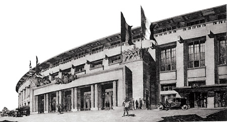 美國學者阿爾弗雷德·海勒在《世博會與走向進步》一書中這樣描述1935年世博會:“與1939年世博會及之前的1933年世博會相比,這屆博覽會顯得退步和凌亂,世博會的建筑物似乎更適合于25年前的那一屆(1910年布魯塞爾世博會),好像是在拒絕承認蕭條的光景與日益升級的戰(zhàn)爭陰影。”現(xiàn)在看來,這也許是世博會抗拒戰(zhàn)爭的一種方式,卻也是世博會現(xiàn)場氛圍和建筑特色給人們的真實感受。世博會在建筑設計上選擇了永久性建筑的設計方案,懷舊特色濃郁的紀念館與藝術館作為主題建筑,風格都趨于折中而缺乏現(xiàn)代感。在公眾活動方面,主辦方專門開辟了新的游樂公園、人工湖,并建造出一座可容納75,000人的露天體育場用于展覽期間的體育運動,足球比賽是當時最具號召力的項目。