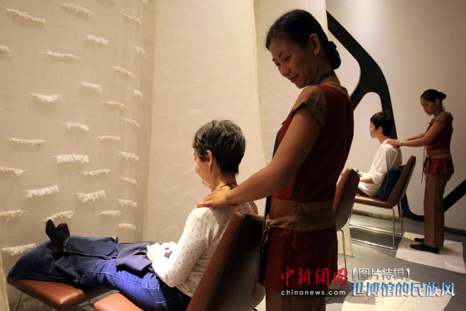 5月1日,上海世博會菲律賓館開館,其館內(nèi)設(shè)置的傳統(tǒng)按摩深受參觀者歡迎,一早便預約完畢。