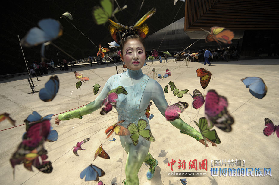 5月1日,上海世博會正式開園。圖為在加拿大展館內表演的世界著名的太陽馬戲團演員。