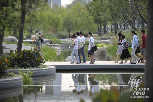 世博公園鋪展水與綠交織的繽紛畫卷