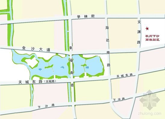金沙湖項目位于下沙中心區(qū)內(nèi),南起北苑路、北至金沙大道、東臨新業(yè)北路、西接規(guī)劃中的聚首路。整個金沙湖的湖區(qū)面積86公頃(1290畝),其中湖面面積36公頃(540畝),湖面面積與紐約中央公園的湖面面積相近。據(jù)了解,2011年底將基本完成金沙湖湖體開挖工程。2012年底,完成金沙湖湖區(qū)周邊景觀、公共交通設(shè)施等工程。5年后,湖區(qū)基本成型。