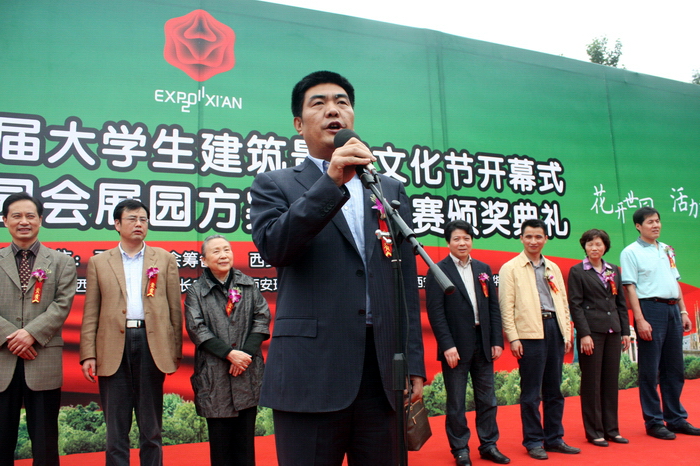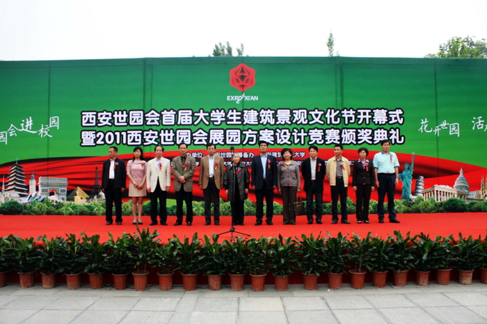 5月17日下午,西安世園會(huì)首屆大學(xué)生建筑景觀文化節(jié)開幕式暨展園方案設(shè)計(jì)競(jìng)賽頒獎(jiǎng)典禮在西安建筑科技大學(xué)隆重舉行。中國工程院院士張錦秋,浐灞生態(tài)區(qū)管委會(huì)主任、世園會(huì)籌備辦主任楊六齊,浐灞生態(tài)區(qū)管委會(huì)副主任、世園會(huì)籌備辦副主任徐軍前出席開幕式并為榮獲展園方案設(shè)計(jì)競(jìng)賽“優(yōu)秀設(shè)計(jì)獎(jiǎng)”和“杰出創(chuàng)新設(shè)計(jì)獎(jiǎng)”的學(xué)生代表頒獎(jiǎng),西安建筑科技大學(xué)等八所高校負(fù)責(zé)人及千余名大學(xué)生代表參加了開幕儀式。
