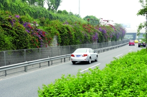 “設計植物上選擇大色塊和線性綠化的有機結合,通過各種常綠植物、落葉樹種、觀花植物、喜陽植物等搭配,形成空間層次多樣化、植物色彩豐富化和圖案形狀多變化的道路景觀!痹撠撠熑吮硎,種植的植物以喬木為主,灌木為輔,主栽楊樹、銀杏、雪、天竺桂、杜鵑等,讓其成為機場高速上的“明珠”。