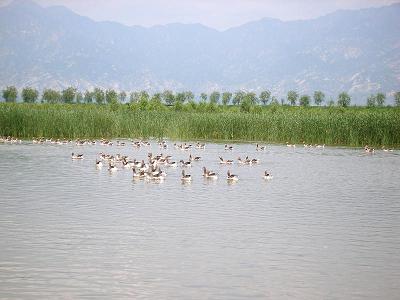 北京延慶野鴨湖濕地自然保護(hù)區(qū)位于北京市西北部,北面是燕山山脈,南面是太行山脈,東南是雄偉的八達(dá)嶺長城。野鴨湖濕地自然保護(hù)系延慶縣所轄官廳水庫(海拔479米)水系及媯水河下游的環(huán)湖灘涂組成的次生性濕地,這里魚蝦豐富,水茂盛,水鳥眾多,野鴨湖濕地保護(hù)區(qū)棲息的鳥類達(dá)到241種,其中國家一級保護(hù)5種(黑鸛、東方白鸛、大鴇、金雕、白尾海雕),二級保護(hù)34種(白天鵝、灰鶴、鴛鴦、鵜鶘)等,這里是冬春南北遷飛候鳥的理想中轉(zhuǎn)棲息地。其中列入北京市一、二級保護(hù)動(dòng)物達(dá)98種。春秋遷徙的候鳥達(dá)到上萬只,在野鴨湖濕地自然保護(hù)區(qū)成千上萬的天鵝、灰鶴、雁鴨、鷺、鶴群棲非常壯觀。每年10月至第二年4月有數(shù)千只灰鶴在這里越冬,到夏季除部分水禽留在保護(hù)區(qū)生兒育女外,同時(shí)還有葦鶯、黃鸝等多種鳴禽唱著悠揚(yáng)動(dòng)聽的歌。