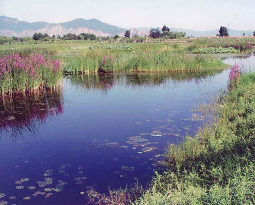 北京市翠湖濕地公園位于海淀區(qū)上莊鎮(zhèn),園內(nèi)規(guī)劃占地面積700公頃。通過(guò)開挖環(huán)湖生態(tài)渠將上莊水庫(kù)北側(cè)的1500畝低洼地圍成具有濕地生態(tài)特征的生態(tài)園,并引進(jìn)濕地動(dòng)植物400余種,形成濕地景觀。濕地除能收集雨水外,還可以對(duì)上游村莊排入的生活污水進(jìn)行凈化。園內(nèi)建有荷花塘、蘆葦塘、野生濕地植物展覽區(qū)、水禽保護(hù)區(qū)、濕地生態(tài)農(nóng)業(yè)園、環(huán)園生態(tài)水區(qū)等。公園環(huán)境優(yōu)美,湖水清澈,水生植物豐富,頗有江南水鄉(xiāng)風(fēng)韻,成為候鳥在北京過(guò)冬或中轉(zhuǎn)南遷的優(yōu)選之地。有關(guān)專家預(yù)測(cè),到2005年夏天翠湖濕地公園的鳥類和水禽將達(dá)到50多個(gè)品種、3000余只。