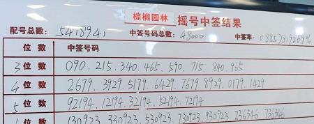 該帖顯示,“中簽號965、090、215、340、465、590、715、840”。之后,棕櫚園林搖出的“末'3'位”中簽號一般無二。從時間上看,中簽號被網(wǎng)民”公布“時,棕櫚園林根本尚未進(jìn)行搖號抽簽。