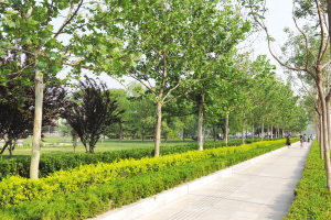 由于受到全球氣候異常的影響,今年的春天姍姍來遲,但這又恰好拉長了春季綠化的時間。原本是三月中旬到四月中旬的春植黃金時間一下延長至五月上旬。西青區緊緊抓住這個有利時機,高質量把綠化工作做好,基本使楊柳青主城區內的裸露土地和主干道路得到高效綠化提升。本次綠化提升工程按照好栽種、易成活、層次鮮明、觀賞價值高的總體要求進行樹種選取。其中以柳口路和御河景區最為突出。柳口路的綠化提升有力地把握住層次鮮明這一特點,充分體現了上有高大喬木,中有觀賞灌木,下有常綠綠籬這一先進的城市綠化布局理念,大量選用欒樹、楊樹、碧桃、榆梅、海棠、女貞、小葉黃楊、大葉黃楊、紫葉小檗、小龍柏等耐寒、耐旱、耐熱、耐鹽堿適宜本地區栽種的植物,大面積按層次種植。