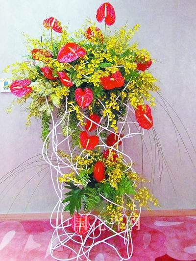 花藝如何體現上海世博會特色呢?在花材、花器的選擇和作品制作過程中,謝明也一直在考慮這個問題,并從多個方面進行了滲透。在風格上,謝明抓住了中國元素和上海城市風貌兩大方面進行融合,用紅而不俗的花材來體現中國元素,又用時尚的設計來展現上海作為時尚之都的風采。在花器的選擇上,謝明則貫徹了世博會節約的理念,花架、支架都是可重復利用的。此外,在作品制作手法上,謝明也力求節省人工,但又不失花藝作品的水準,在他看來,節省人工、高效快速地完成作品,也是世博節約理念的一種體現。