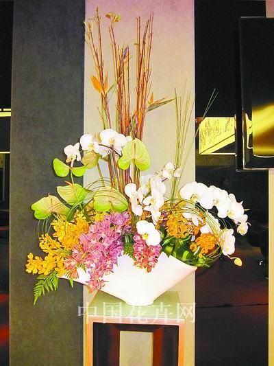 當上海世博局相關負責人誠心邀請謝明老師時,對世博文化中心所需的花藝,從風格到花材、花器都沒有限制條條框框,這讓謝明有了很大的施展空間。承接過多次政府重大項目花藝布置的謝明,對一些原則的把握是心里有底的,例如,當攝像鏡頭對準講臺的時候,花的高度不能超過講話者上數第2顆紐扣;花藝作品擺放的位置如何不影響到通行等。
