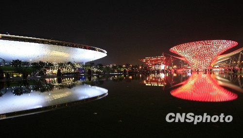 6月2日,上海世博中國館、世博文化中心以及世博軸夜景。