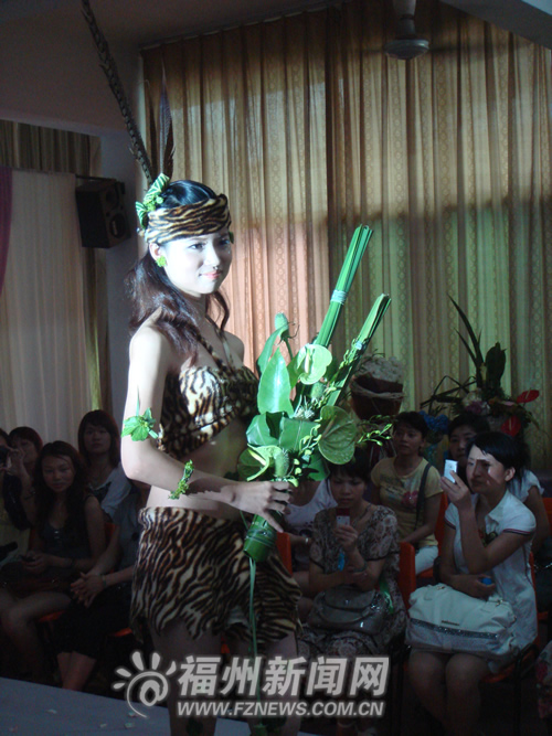 21日下午,活動的第三項——人體花藝項目在福州精彩上演。小荷花藝婚慶禮儀策劃公司本著“把藝術融入婚禮,把婚禮變?yōu)樗囆g”的設計理念讓插花藝術愛好者領略了花藝在人體上的完美展現(xiàn)。