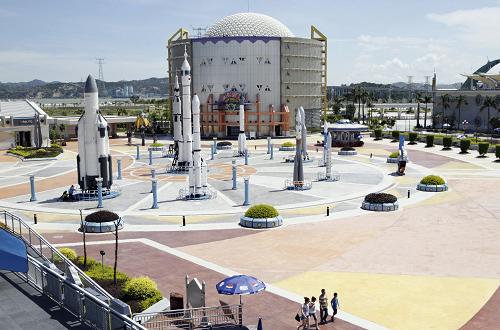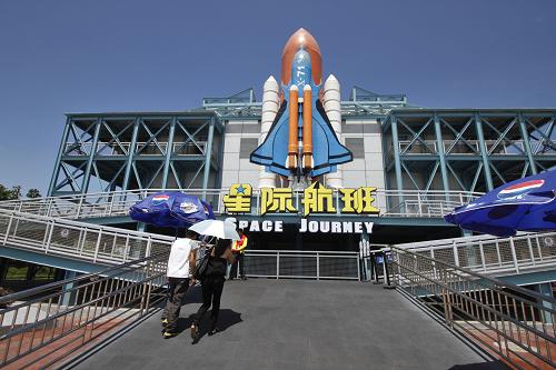 藍水星樂園以航空航天技術(shù)為主題的“太空世界”景點(7月10日攝)。(郭海 攝)