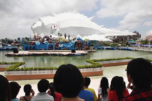 藍水星樂園的“海螺灣劇場”(7月10日攝)。“海螺灣劇場”營造出一個高度真實感的、唯美神奇的海下世界。 (郭海 攝)