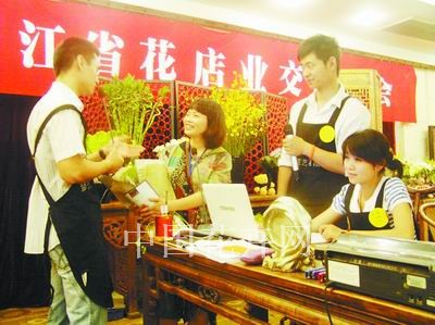大賽由杭州圖書館和浙江省花卉協(xié)會零售業(yè)插花花藝分會聯(lián)合舉辦,據(jù)分會常務(wù)副會長、杭州夢湖花藝總經(jīng)理趙小進介紹,近兩年,花店對于提高管理水平的需求越來越強烈,為此,他萌生了編排花店接生意情景劇的想法,夢湖花店工作人員扮演花店負責(zé)人、店員、花藝師、財務(wù)、顧客等不同角色,將花店在日常經(jīng)營管理中經(jīng)常會遇到的各種問題、應(yīng)對措施等一一搬到舞臺上,在分享經(jīng)驗的同時,也請專家、同行提出意見和建議。