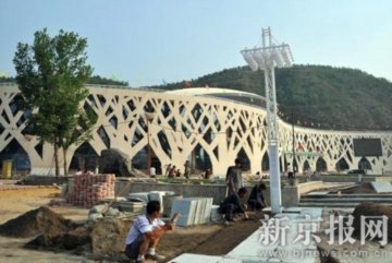 [背景]蒲子文化宮外觀造型為鋼筋混凝土結構,由23棵大樹圍繞而成,樹枝上點綴上鳥巢,頂部為“樹”造型,非常壯觀宏大,因而有人指出其像“鳥巢”。