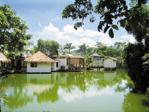這幾間建在湖中的茅屋就是按摩室