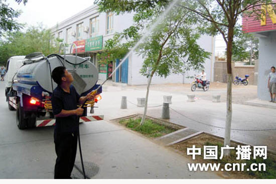 為避免夏季高溫給樹木造成的傷害,吐魯番市園林局植保站的工作人員們從6月進入高溫期后,就及時調整工作時間,制定了特殊的作息制度,避開市民用水高峰,在每天晚上21:00至凌晨6:00期間,出動三臺噴水車為市區13條主干道兩旁的2萬多棵樹木“洗澡”降溫;通過這一措施,基本保證了市區所有樹木健康生長,這一措施預計將持續至8月底。