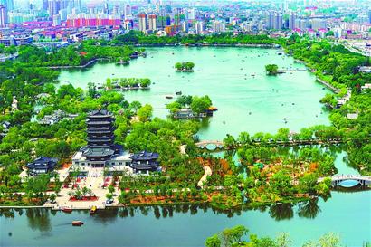濟南:大明湖變身“城中湖”景色迷人