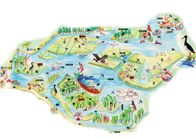 與其他地圖不同,這幅“綠地圖”上講述了一個(gè)“聽(tīng)我小黑講”的小故事,隊(duì)員們用黒鸛的視角,從這個(gè)別具一格的新穎角度,介紹了“綠地圖”上的生態(tài)分布情況。隊(duì)員們說(shuō),制作這張綠地圖只是一個(gè)“引子”,目的是通過(guò)繪制出首張“綠地圖”,吸引大眾對(duì)西洞庭湖生態(tài)狀況的興趣與關(guān)注,保護(hù)即將從地球上消失的珍稀物種。
