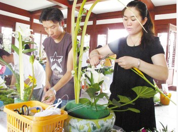 和綠化工種競(jìng)賽同步舉行的是在蘇公島上進(jìn)行的花卉競(jìng)賽。30余名參賽選手每人做一件插花作品,為命題插花,選手可從“綠色家園”和“夏日”中任選一題目。