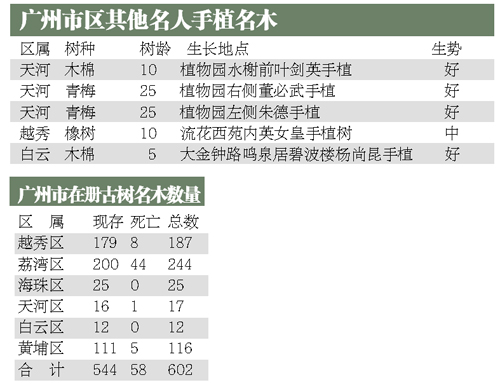 華南農(nóng)業(yè)大學(xué)風(fēng)景園林城市規(guī)劃系主任、教授李敏表示,廣州市內(nèi)政府頒令保護(hù)的602株古樹名,近年來每年都有3~5株死亡,現(xiàn)存僅544株;而未頒令保護(hù)古樹的生死情況則無記載,至少約1000株,其生存條件受到更多的威脅。