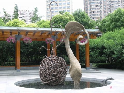 美國(guó)女雕塑家芭芭拉·愛德斯坦嘗試用雕塑來表現(xiàn)水。她的作品《生命之水》陳列在靜安雕塑公園長(zhǎng)廊南的花架前廣場(chǎng)。《紅樓夢(mèng)》主角曾把女人比作“用水做的”;而此刻,這位來自西方的女性,竟然能夠用至硬的“金”——銅與鐵來塑造至柔的水,以及水獨(dú)有的無處不在的張力,體現(xiàn)出“上善若水”的東方精神。