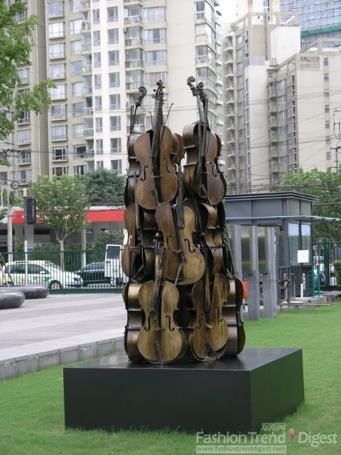 雕塑和音樂,繆斯九神中一對(duì)性格大異的孿生姐妹,雕塑是“靜止的音樂”,而音樂是“躍動(dòng)的雕塑”。但是,被載入西方藝術(shù)史冊(cè)的藝術(shù)大師阿曼·皮埃爾·費(fèi)爾南德茲的系列參展作品《男低音》、《音樂之神》、《音樂的力量》、《智慧之音》、《美麗時(shí)刻》等,打破了雕塑和音樂的“個(gè)性界限”,把這對(duì)姐妹合成了一體:你中有我、我中有你。他把四、五把提琴進(jìn)行了不同方式的切割、分解、組合、集成,賦靜態(tài)雕塑以音樂的靈魂及功能。這一連串美妙的“音樂雕塑”,被綴在靜安雕塑公園“七彩花帶”作成的“五線譜”上,人們能夠從中“聽”同時(shí)也“看”到提琴奏出的各種主題旋律。