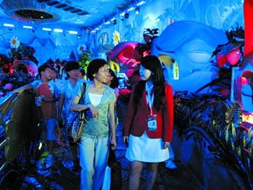一踏上二樓展區(qū),讀者代表就被眼前的美景“驚呆”了。“雖然聽(tīng)說(shuō)俄羅斯館很漂亮,但親眼目睹的感覺(jué)實(shí)在是太震撼了。”讀者代表王曉說(shuō)。在各色燈光映照下,巨大的牽牛花纏繞著柱子緩緩而上;比人還高的蘑菇、花朵、水果、蛋糕和汽車(chē)等形態(tài)逼真,個(gè)體龐大,“真是太美了,好像到了‘小人國(guó)’一樣。”