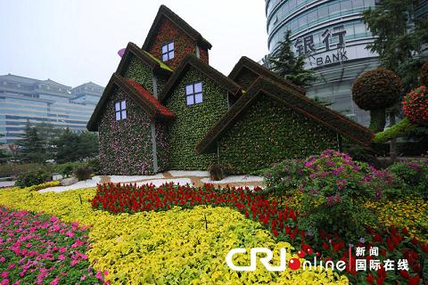2010年9月15日,北京西單路口以“和諧家園”為主題的立體花壇。國慶前夕,北京長安街沿線將建11處立體花壇。9月25日將全部完工建成。