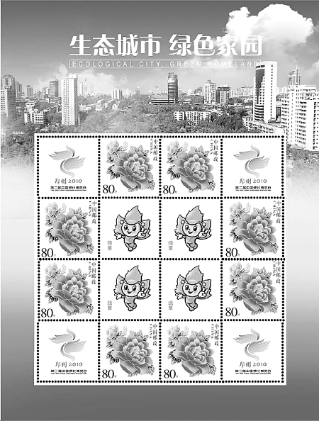 9月26日,由中國郵政集團公司批準發行的“生態城市綠色家園”個性化郵票以及郵冊正式亮相。該版個性化郵票采用8枚版式,以“花開富貴”為主圖,附圖采用綠博會吉祥物和會徽,設計精美,簡單大方。郵冊則收錄了綠博會全套郵票及鳥類、花卉相關題材郵票。