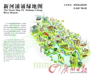 作為本次廣州河涌綠地圖繪制的重點,東濠涌綠地圖由30多名亞運志愿者歷時一年繪制而成,綠地圖詳細描繪東濠涌全線及沿岸的地標建筑,展示河涌沿線歷史文化遺存及河涌變綠過程。