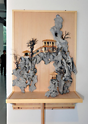 至于“五相園計劃”的象征意義,藝術家在他的自述中表達甚明。而從旁觀的角度看,又可想見山、水、天、地、壁的“五相”在當下生活的意義。國人被樓市經濟綁駕是資本邏輯的結果,但被犧牲的是傳統生活中與土地天時互動的關系。如果在水泥叢林中重建文明,在樓居生活中詮釋一小角落園林所負載的信息,將會功德無量。“五相”的形態是葉放的創意,這里的冶園思維超出了傳統范疇。山水二相之外,天地壁三相簡直是奇想,這奇想明顯來自現代的透視和跨越傳統世界的思維。以今日的建筑形態反觀五相園,葉放是異端,他的特點在于以泉林為思考建筑的先決考慮。這與社會規劃的現代主義、奇觀的后現代建筑、能源經濟的環保設計都不同。以園林為建筑的起點是把建筑放在一個“天地”之內,以世界觀為生活建筑計劃的起端。這個倒置或許可以刷新現代建筑的思考程序。這是否葉放造境的另一個當代意義,或是指向未來的展望,則又有待于各界有心人的共同努力了。