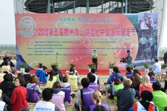 “濕地健走低碳生活身心潤(rùn)澤”——2010第五屆滕州微山湖濕地中國(guó)國(guó)際健走節(jié)于2010年10月22日至24日在中國(guó)滕州微山湖濕地景區(qū)健走養(yǎng)生基地舉辦。中國(guó)國(guó)際健走節(jié)組委會(huì)從2010年6月在山東滕州紅荷濕地景區(qū)等地舉辦了系列健走活動(dòng),此次是一次健走精彩濃縮版。“濕地健走低碳生活身心潤(rùn)澤”健走活動(dòng)由中國(guó)國(guó)際健走協(xié)會(huì)、中國(guó)國(guó)際健走節(jié)組委會(huì)、中共滕州市委、滕州市政府主辦,滕州微山湖濕地景區(qū)管委會(huì)、萬步網(wǎng)協(xié)辦,滕州市體育局、滕州市旅游局承辦;世界華商聯(lián)合會(huì)生命科學(xué)委員會(huì)、北京外國(guó)語大學(xué)中國(guó)語言文學(xué)學(xué)院、大連市國(guó)際徒步協(xié)會(huì)生命駕校健康產(chǎn)業(yè)聯(lián)盟、安徽太平湖健走基地浙江寧波富瑞健走基地、北京天開瑞祥不老山莊健走基地等機(jī)構(gòu)為支持單位;中國(guó)中央電視臺(tái)、健康時(shí)報(bào)、51walking健走網(wǎng)、39健康網(wǎng)、樂途旅游網(wǎng)等為協(xié)辦媒體。