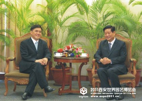 9月14日上午,2011西安世園會(huì)組委會(huì)主席、陜西省委副書記、陜西省代省長(zhǎng)趙正永,2011西安世園會(huì)組委會(huì)副主席兼執(zhí)委會(huì)主任、西安市委副書記、西安市長(zhǎng)陳寶根,分別與臺(tái)北市市長(zhǎng)郝龍斌舉行會(huì)談,就兩地交流合作與接力舉辦花博會(huì)/世園會(huì)事宜進(jìn)行了商討。