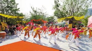 在園博園主會場表演的市民腰鼓隊(圖片:深圳特區報)